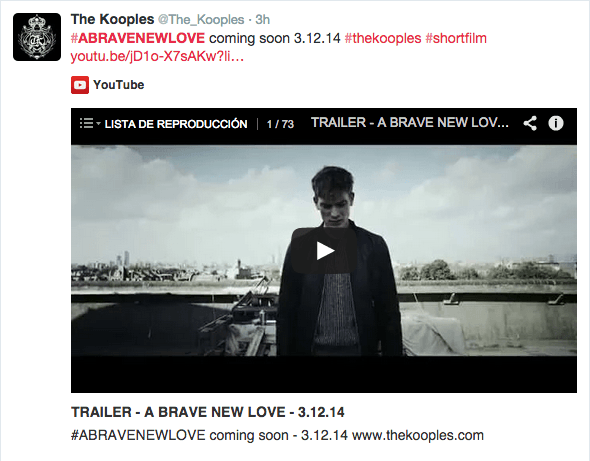 [Actualización 2019 – The Kooples eliminó su canal de Youtube, por lo que he retirado el video de ejemplo que te enseñaba una de sus estrategias para lanzar producto en Redes Sociales. Te dejo esta imagen de una campaña reciente y te invito a echar un vistazo a su perfil